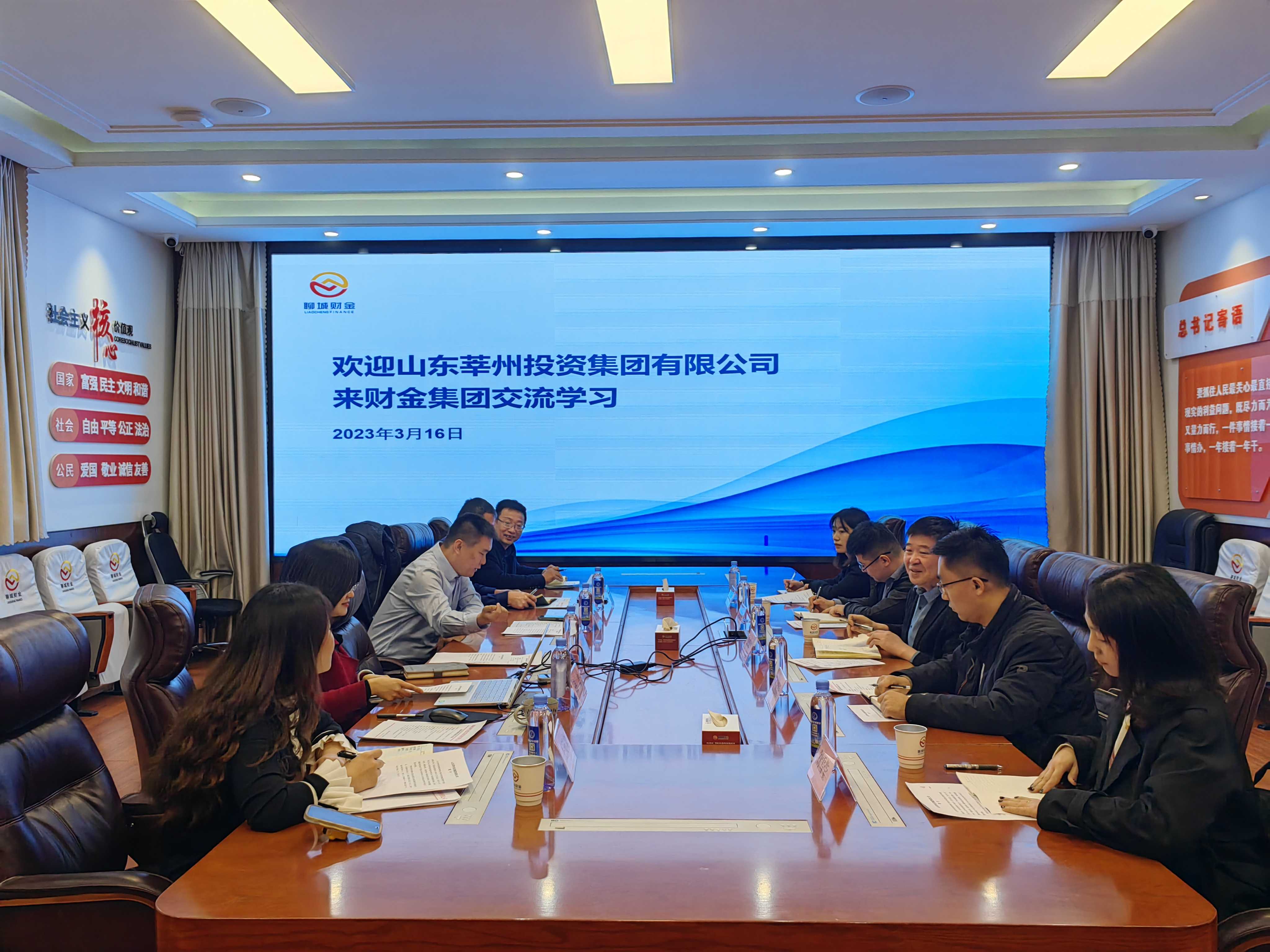 3月16日,山東莘州投資集團(tuán)有限公司黨委副書記、總經(jīng)理陳現(xiàn)啟帶隊(duì)赴聊城財(cái)金集團(tuán)開展交流學(xué)習(xí)活動(dòng)。財(cái)金集團(tuán)副總經(jīng)理趙青賓、總經(jīng)理助理孫競(jìng)及相關(guān)人員參加座談。
